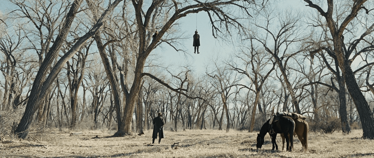 Recall, for example, the photography of 2010’s True Grit. At the most positive level of natural interaction we have a shot of a horse and rider going from left to right of shot, the land almost a cross section of the screen – the land carries the animals. At the worst, we have a man hanging from a tree in a clearing of the branches. The wood is used to support his weight, yes, but that weight is a dead one.